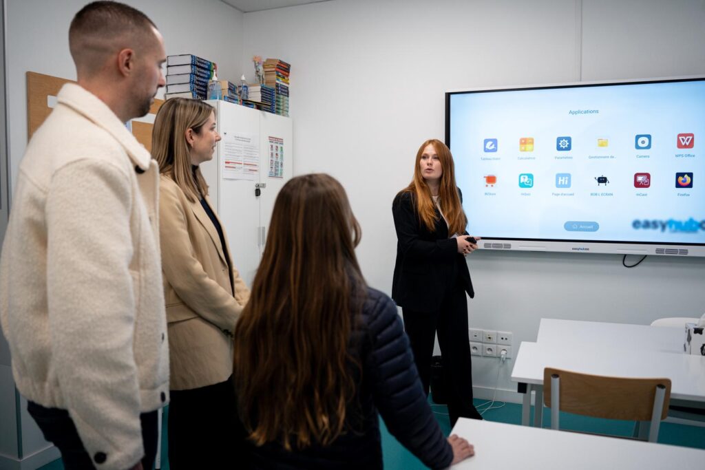 - Tableaux digitaux interactifs : toutes nos salles de classe sont connectées et équipées de tableaux interactifs de dernière génération, permettant des cours dynamiques, visuels et collaboratifs.